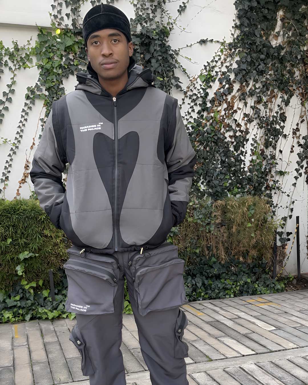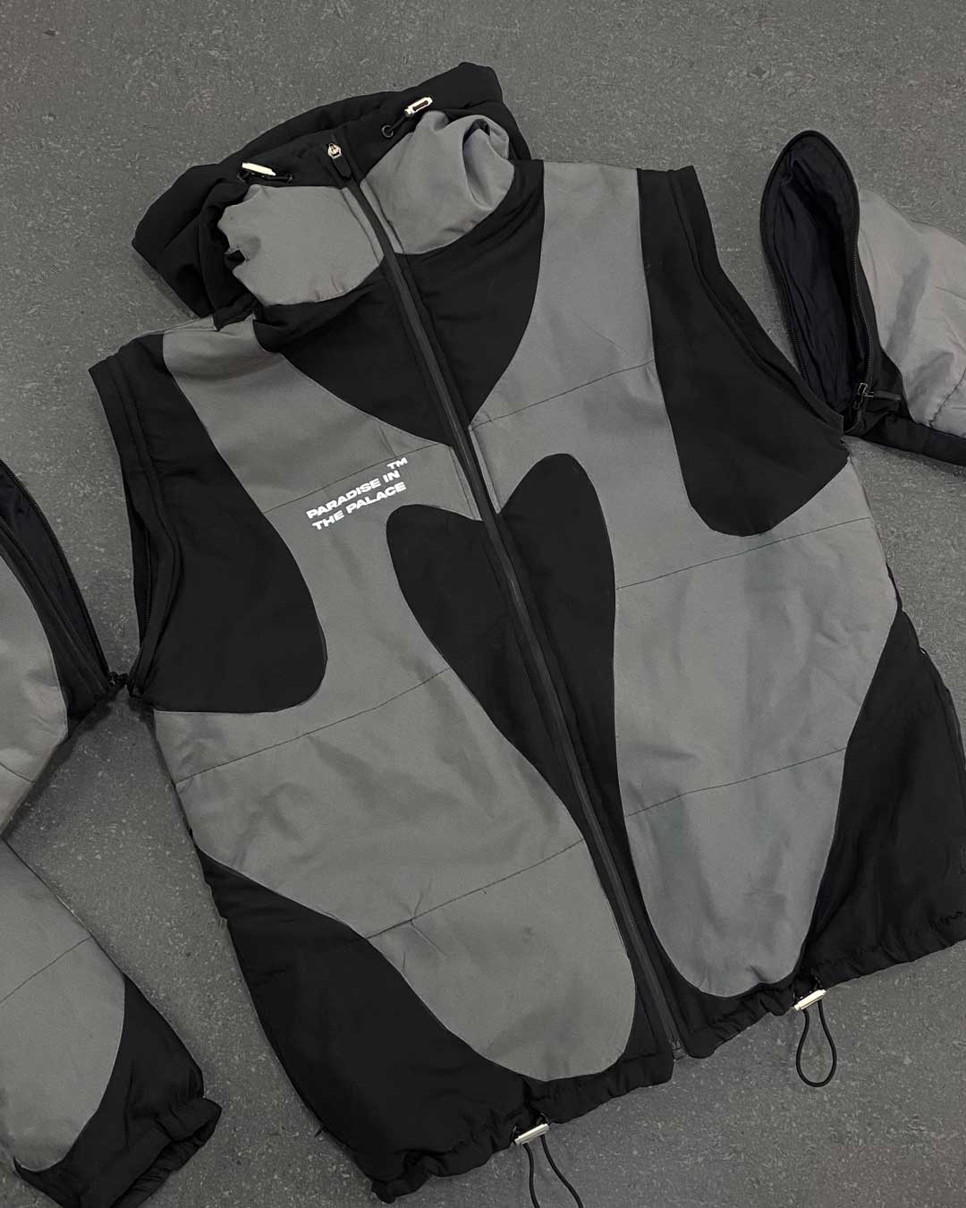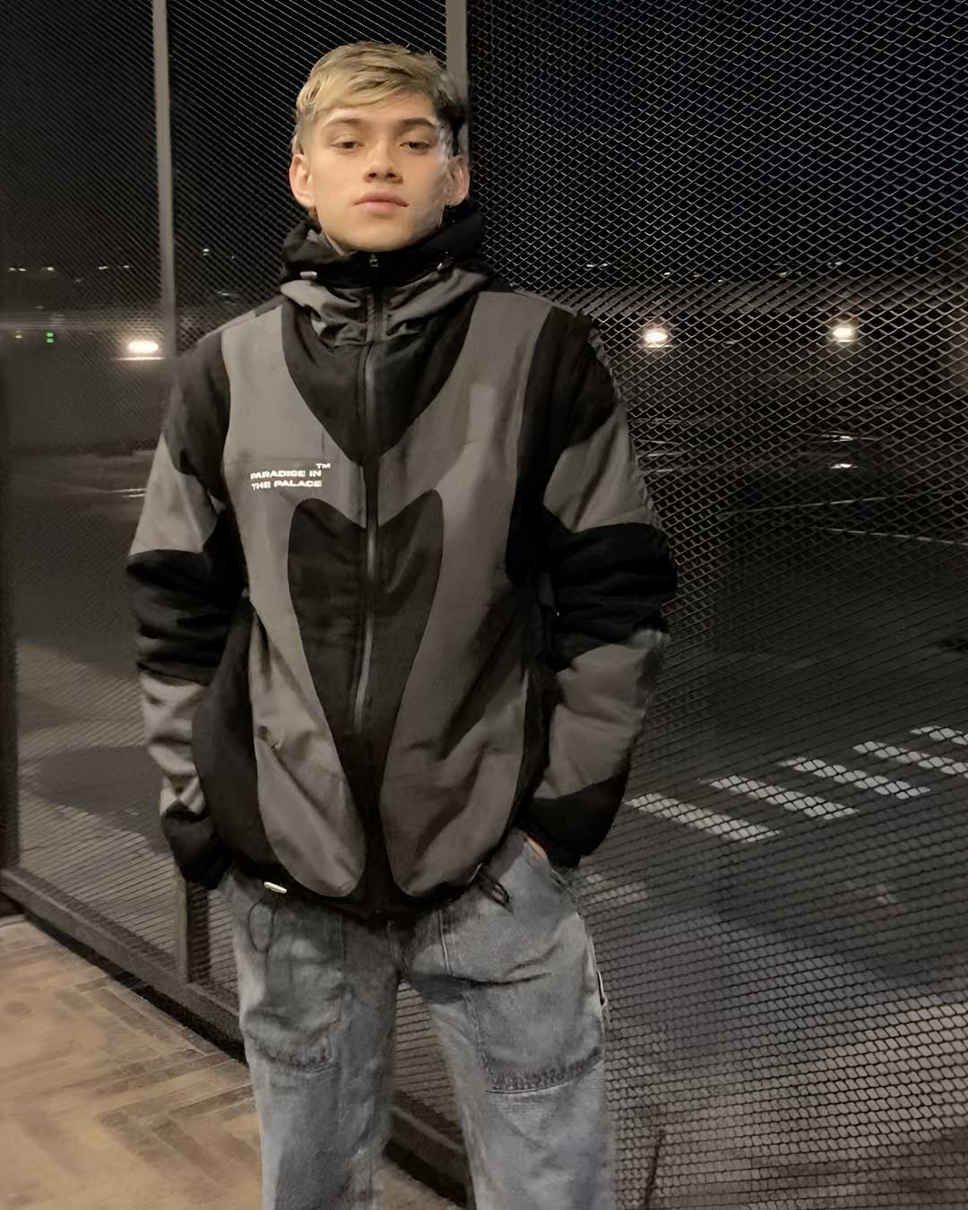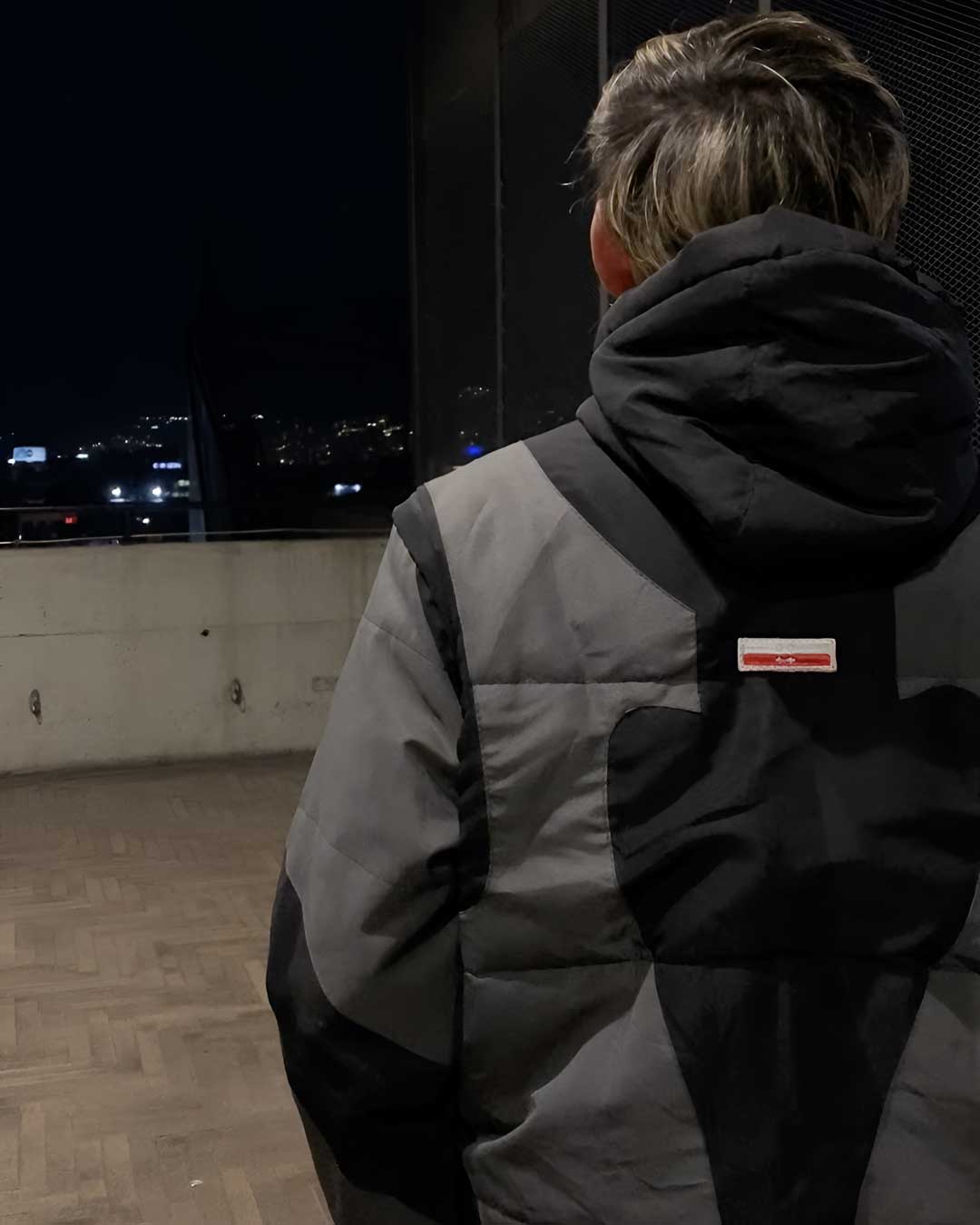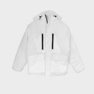 Chaqueta puffer en tejido antifluido, cierre frontal. Bolsillos laterales ocultos, logos bordados y estampados en alto relieve.