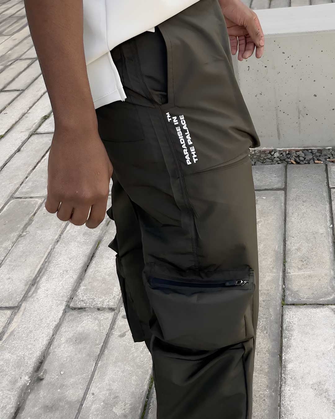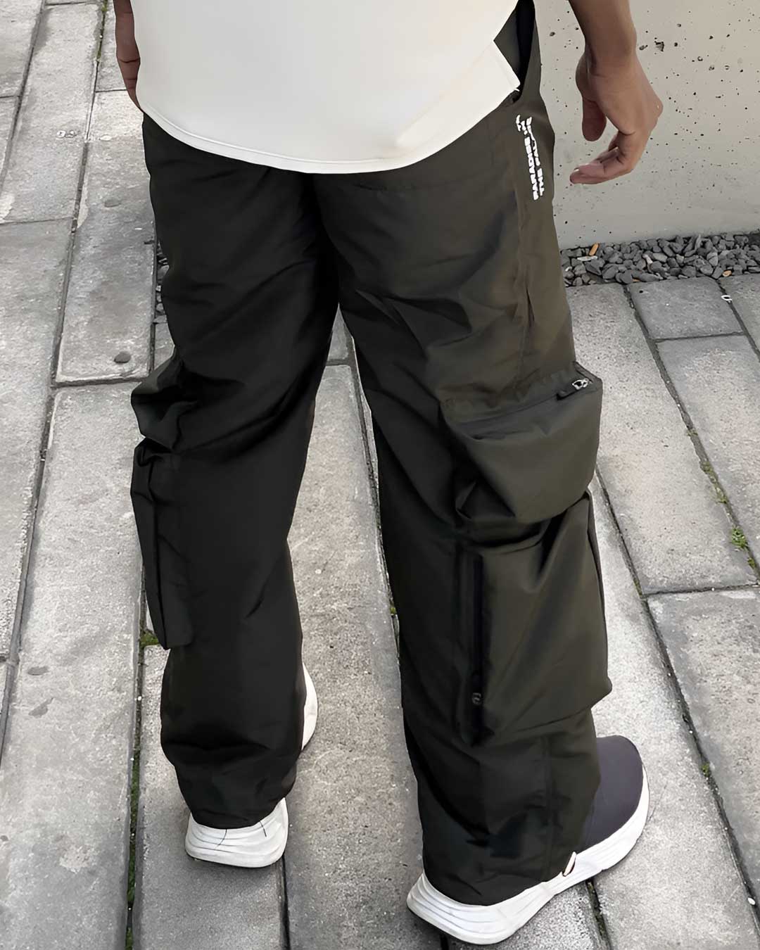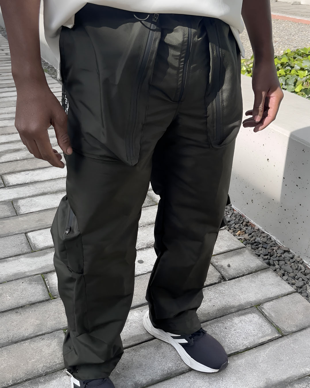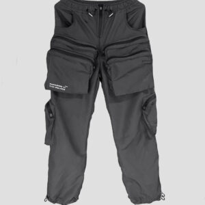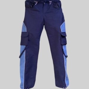 Pantalón cargo en tejido funcional antifluido, cierre frontal, 8 bolsillos y elásticos ajustables.